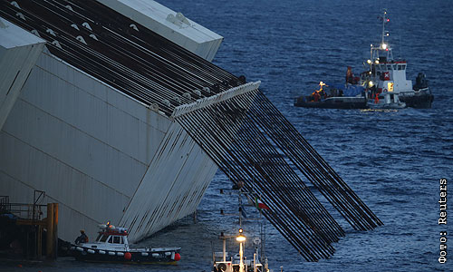 Итальянские специалисты 16 сентября впервые попытаются привести в вертикальное положение круизный лайнер "Коста Конкордия", который в январе минувшего года затонул близ острова Джильо у берегов области Тоскана.
