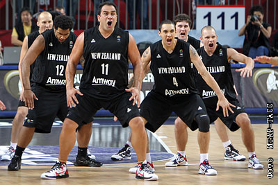 Игроки сборной Новой Зеландии исполняют перед началом матча чемпионата мира по баскетболу: Россия - Новая Зеландия - 78:56