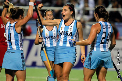Женская сборная команда Аргентины встретилась со сборной Англии в матче чемпионата мира по хоккею с мячом в Росарио