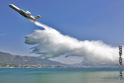 Самолет Бе-200 выполнил полет со сбросом воды на Международной выставке "Гидроавиасалон-2010" в Геленджике