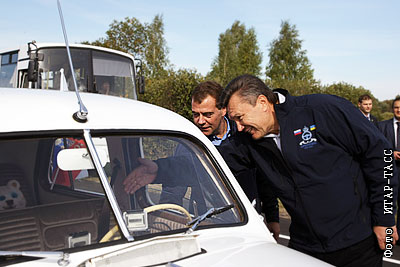 Президенты России и Украины Дмитрий Медведев и Виктор Янукович возглавили очередной этап Международного авторалли в ознаменование столетия первого автопробега на Приз Императора Николая II по маршруту Санкт-Петербург - Киев