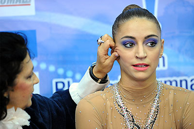 Главный тренер сборной команды России по художественной гимнастике Ирина Винер и российская спортсменка Евгения Канаева, завоевавшая "золото" в упражнении с мячом, после выступления на чемпионате мира по художественной гимнастике в СК "Олимпийский"