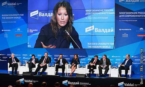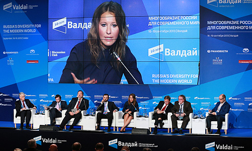 Телеведущая Ксения Собчак участвует в дискуссионной сессии "Ценностный разрыв" на 10-м юбилейном заседании Международного дискуссионного клуба "Валдай" в Новгородской области.