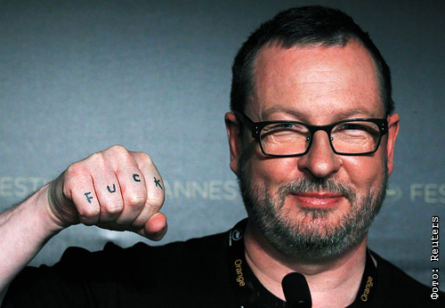 Режиссер Ларс фон Триер позирует во время пресс-конференции, посвященной фильму "Меланхолия"