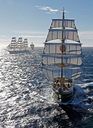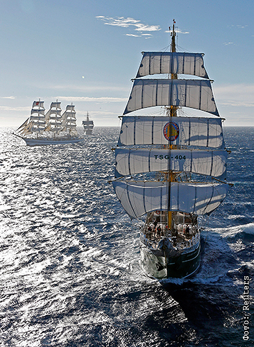 Германский парусник "Александр Фон Гумбольдт" (справа) и российский "Мир".