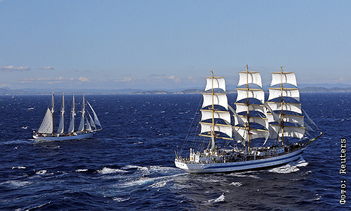Российский парусник "Мир" (справа) и португальский "Санта Мария Мануэлла".