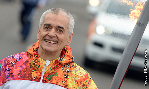 Руководитель Роспотребнадзора, главный государственный санитарный врач РФ Геннадий Онищенко во время эстафеты Олимпийского огня в Москве.