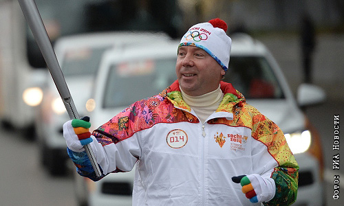 Управляющий делами президента РФ Владимир Кожин во время эстафеты Олимпийского огня в Москве.