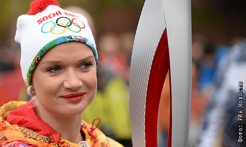 Депутат Госдумы РФ Светлана Хоркина перед эстафетой Олимпийского огня в Москве.