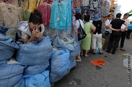 Торговцы на вещевом рынке "Лужники", 2009 г