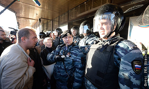 Местные жители общаются с сотрудниками полиции во время народного схода возле торгового центра "Бирюза" в московском районе Бирюлево. Местные жители собрались у торгового комплекса "Бирюза" в районе Бирюлево Западное в Москве, требуя найти убийц Егора Щербакова.