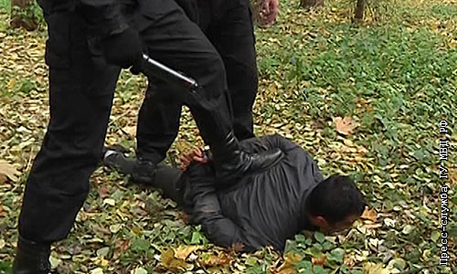 Подозреваемый в убийстве жителя московского района Западное Бирюлево Егора Щербакова Орхан Зейналов во время задержания сотрудниками полиции и СОБР в подмосковной Коломне.