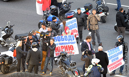 Несколько активистов мотосообщества собрались в Москве на Садовом кольце с требованием освободить из-под стражи основателя движения "Мотограждане" Юрия Некрасова, обвиняемого в убийстве члена байк-клуба "Ночные волки", сообщил один из участников акции. Сегодня Мосгорсуд продлил Некрасову срок содержания в СИЗО до 20 января 2014 года.