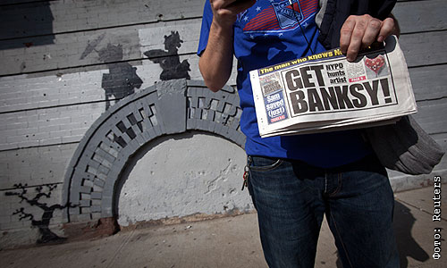В Нью-Йорке появилось новая граффити-работа уличного художника Бэнкси. Мэр города Майкл Блумберг, в свою очередь, на это высказался так: "Граффити портят частную собственность и являются признаком упадка и потери контроля".