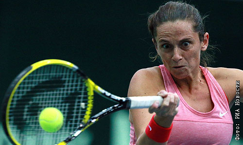 Роберта Винчи (Италия) во время четвертьфинального матча женского одиночного разряда "Кубка Кремля 2013" против российской теннисистки Светланы Кузнецовой.