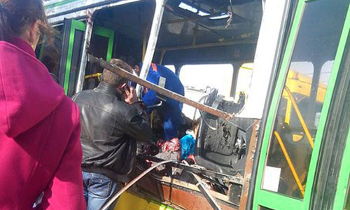 Пассажирский автобус, взорванный в Красноармейском районе Волгограда. В результате теракта погибли по меньшей мере пять человек, десятки получили ранения.