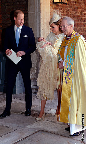 Сына герцога и герцогини Кембриджских Уильяма и Кейт крестил архиепископ Кентерберийский Джастин Уэлби. Церемония носила закрытый характер, на ней присутствовали только 22 человека, в том числе представители трех поколений королевской семьи.