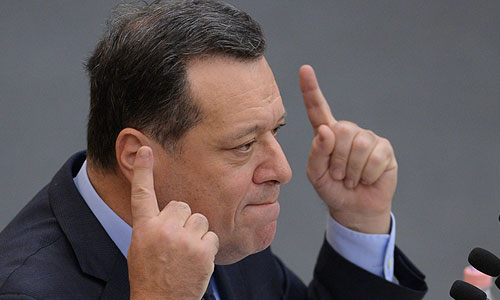 Председатель комитета Госдумы по бюджету и налогам Андрей Макаров во время выступления на заседании Государственной Думы РФ.