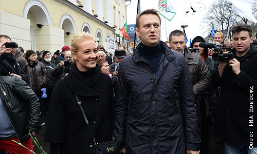Оппозиционер Алексей Навальный с супругой Юлией на шествии в поддержку политзаключенных по Бульварному кольцу.