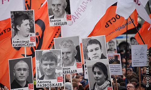 Участники шествия в поддержку политзаключенных по Бульварному кольцу.