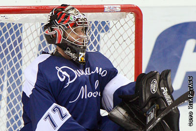 Вратарь "Динамо" Синухе Валленхеймо в матче чемпионата России "Салават-Юлаев" (Уфа) - "Динамо" (Москва) – 3:2