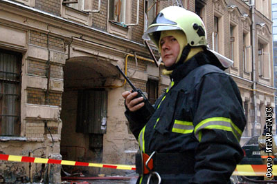 На месте пожара в выселенном жилом доме, возникшем из-за взрыва баллона с пропаном, в результате которого пострадали 4 человека