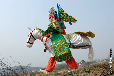 Ребенок в костюме лошади исполняет ритуальный танец "Нуо", призванный изгнать злых духов и уберечь от эпидемий и бедствий