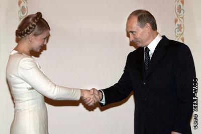 Президент России Владимир Путин и премьер-министр Украины Юлия Тимошенко на встрече в Ново-Огарево