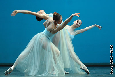 Сцена из одноактного балета Джорджа Баланчина "Серенада" на музыку Петра Чайковского. Показ балета прошел на сцене ГАБТ в рамках фестиваля "Золотая маска"