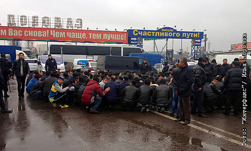 Широкомасштабная операция столичной полиции началась в понедельник на территории торгового центра "Садовод" в рамках мероприятий по декриминализации московских рынков. Полицейские проверяют документы у граждан, находящихся на территории торгового комплекса. В тех случаях, когда представленные документы вызывают вопросы, граждане доставляются в автобусы для дальнейшей проверки.
