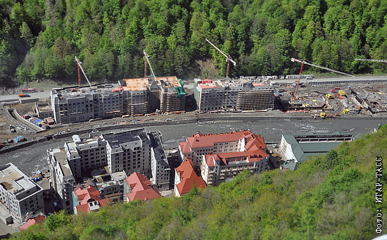 Строительство гостиничного комплекса горнолыжного курорта "Роза Хутор" на реке Мзымта