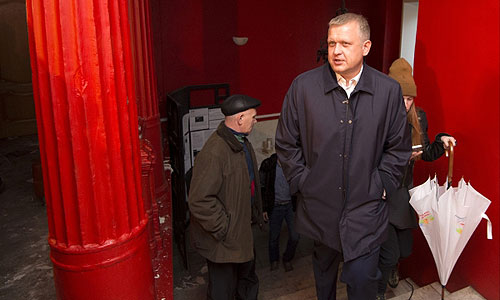 Руководитель департамента культуры Москвы Сергей Капков во время посещения театра "Школа современной пьесы" после пожара.
