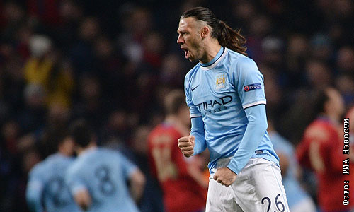 Игрок ФК "Манчестер Сити" Мартин Демикелис радуется голу, забитому в ворота команды соперников в матче группового этапа Лиги Чемпионов УЕФА сезона 2013/14 между ФК "Манчестер Сити" (Великобритания, Манчестер) и ПФК ЦСКА (Россия, Москва).