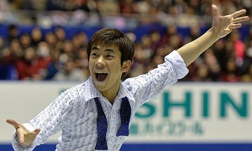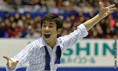 Ода Нобунари (Япония) в короткой программе мужского одиночного катания Четвертого этапа Гран-при по фигурному катанию в Токио.