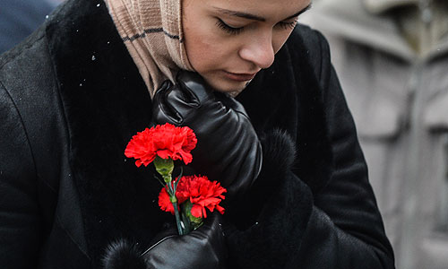 Женщина в международном аэропорту "Казань" несет цветы в память о погибших в авиакатастрофе самолета Boeing 737 авиакомпании "Татарстан", разбившегося при посадке.