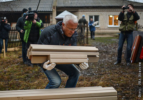 Банкир Александр Лебедев, приговоренный к 150 часам обязательных работ за избиение бизнесмена Сергея Полонского, приступил к исполнению наказания - к монтажу детской площадки в селе Поповка Чернского района Тульской области.