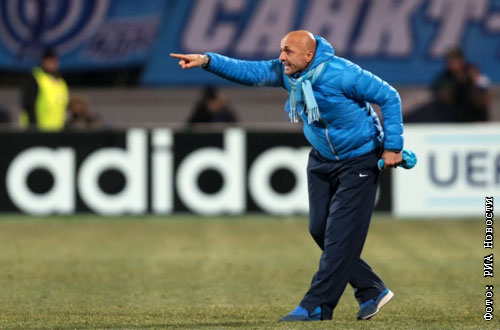 Главный тренер "Зенита" Лучано Спаллетти дает указания игрокам своей команды в матче группового этапа Лиги Чемпионов УЕФА между ФК "Зенит" (Санкт-Петербург) и ФК "Атлетико" (Мадрид).