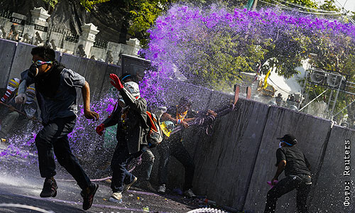 Полиция вновь вступила в столкновения с демонстрантами близ здания правительства в столице Таиланда Бангкоке. Стражи порядка, охраняющие правительственные учреждения, применили против протестующих слезоточивый газ. Демонстранты бросали в полицейских камни и другие предметы. По меньшей мере 55 человек были госпитализированы в результате столкновений, произошедших в столице накануне и в понедельник. Они были помещены в пять различных больниц Бангкока.