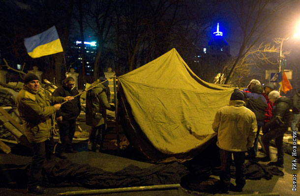 Люди дежурили возле баррикад, сменяя друг друга. Наиболее серьезные форпосты установлены на улице Грушевского - возле Верховной Рады со стороны станции метро "Арсенальная", там дорогу преграждает самосвал и несколько автомобилей. Кроме того, на улице Лютеранской возле администрации президента развернута даже колючая проволока. Помимо установленных в воскресенье вечером баррикад, еще одна к утру понедельника появилась на улице Крещатик возле здания киевского ЦУМа.