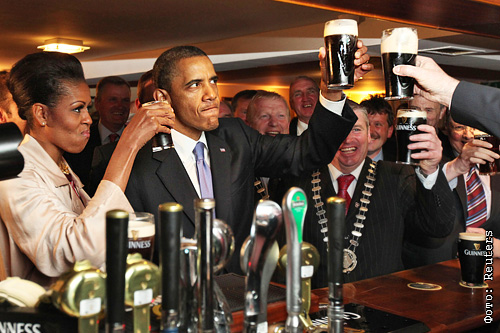 Американский президент с женой в пабе ирландской деревни Манигол - родине предков Барака Обамы