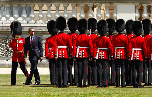 Президент США Барак Обама осматривает Почетный караул в Букингемском дворце в Лондоне