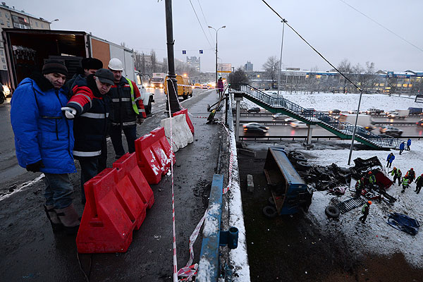 Грузовик упал с эстакады в Москве
