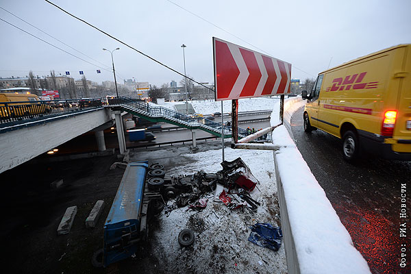Грузовик упал с эстакады в Москве