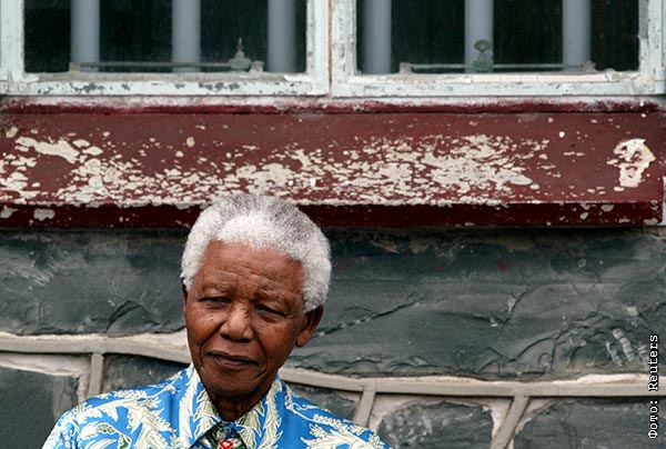 Нельсон Мандела у окна своей камеры, в которой он провел 27 лет.