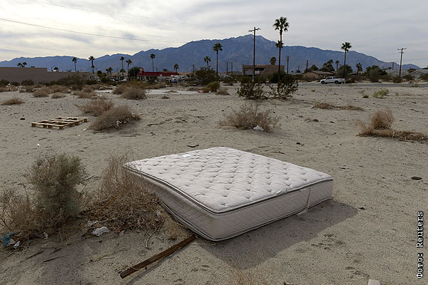 Брошенный где-то посреди калифорнийской пустыни "Хот Спрингз" матрас.