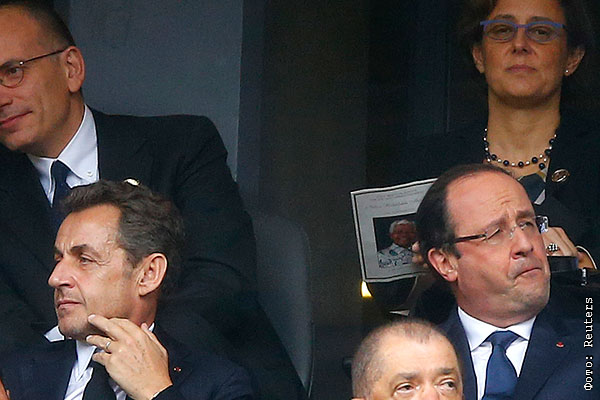 Бывший президент Франции Николя Саркози (слева) и нынешний, Франсуа Олланд (справа).