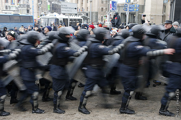 Около тысячи бойцов милицейского спецназа, которые ограничивали проход митингующих по площади, отступили за свои автобусы. После этого автобусы с беркутовцами отъехали от здания столичного муниципалитета. Протестующие встретили отступление "Беркута" радостными возгласами "Домой, домой!".
