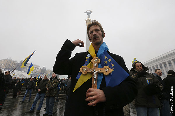 Участники акции в поддержку евроинтеграции Украины на площади Независимости.