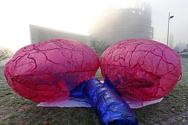 Гигантские надувные легкие появились во вторник на газоне перед зданием Европарламента в Страсбурге. Данная акция призвана привлечь внимание европейского парламента к проблеме загрязнения воздуха.