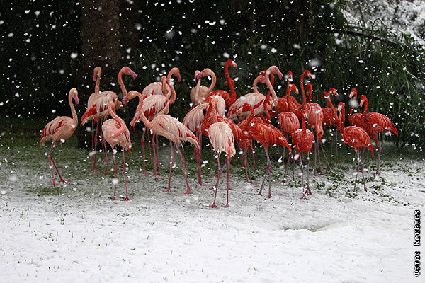 Розовые фламинго в иерусалимском зоопарке Biblical Zoo.